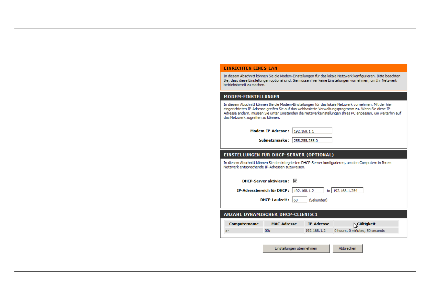 können Sie die IP Adresse des Modems und den Adressbereich des DHCP Servers ändern.