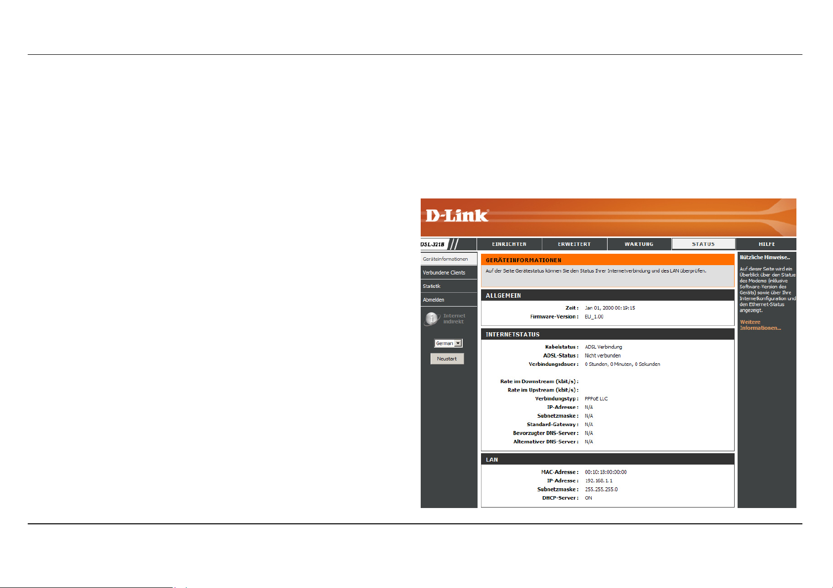 Ist das Modem synchronisiert können Sie unter Status – Geräteinformationen sehen ob es