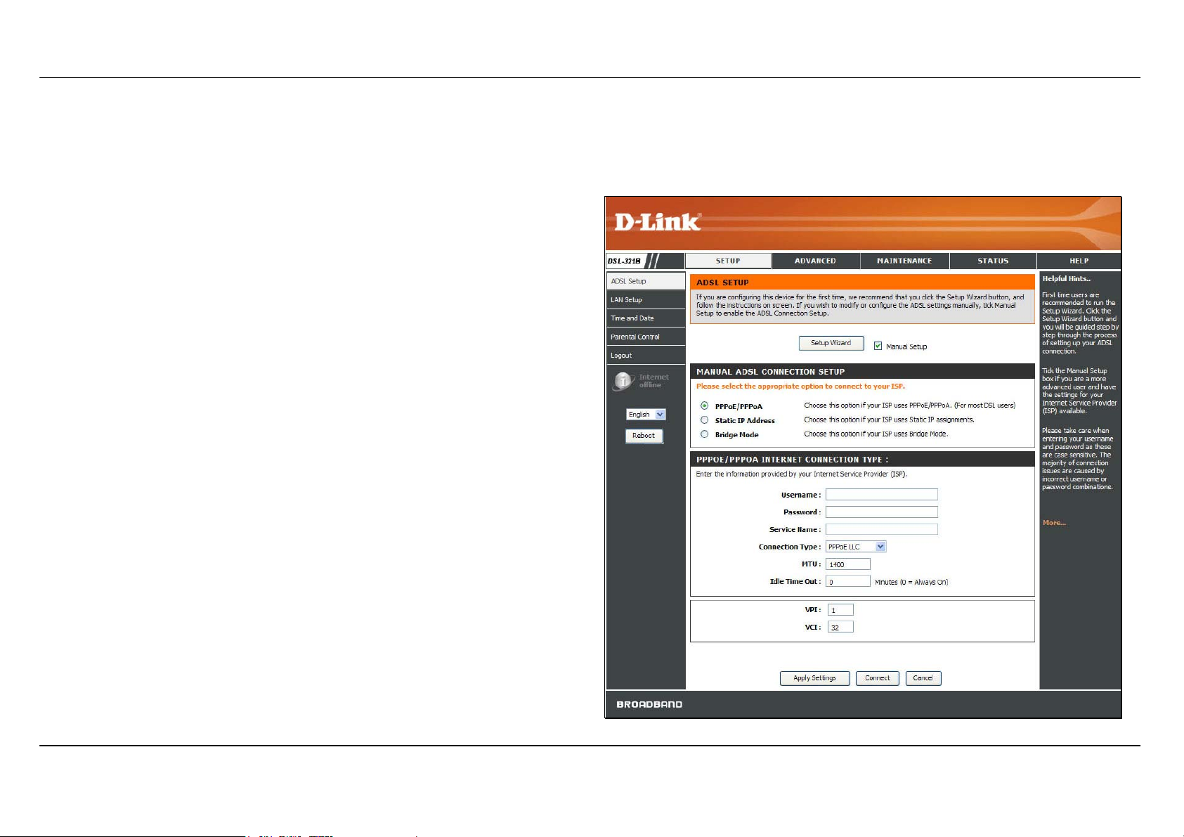 4. Klicken Sie oben auf Einrichten und links auf Einrichten von ADSL.