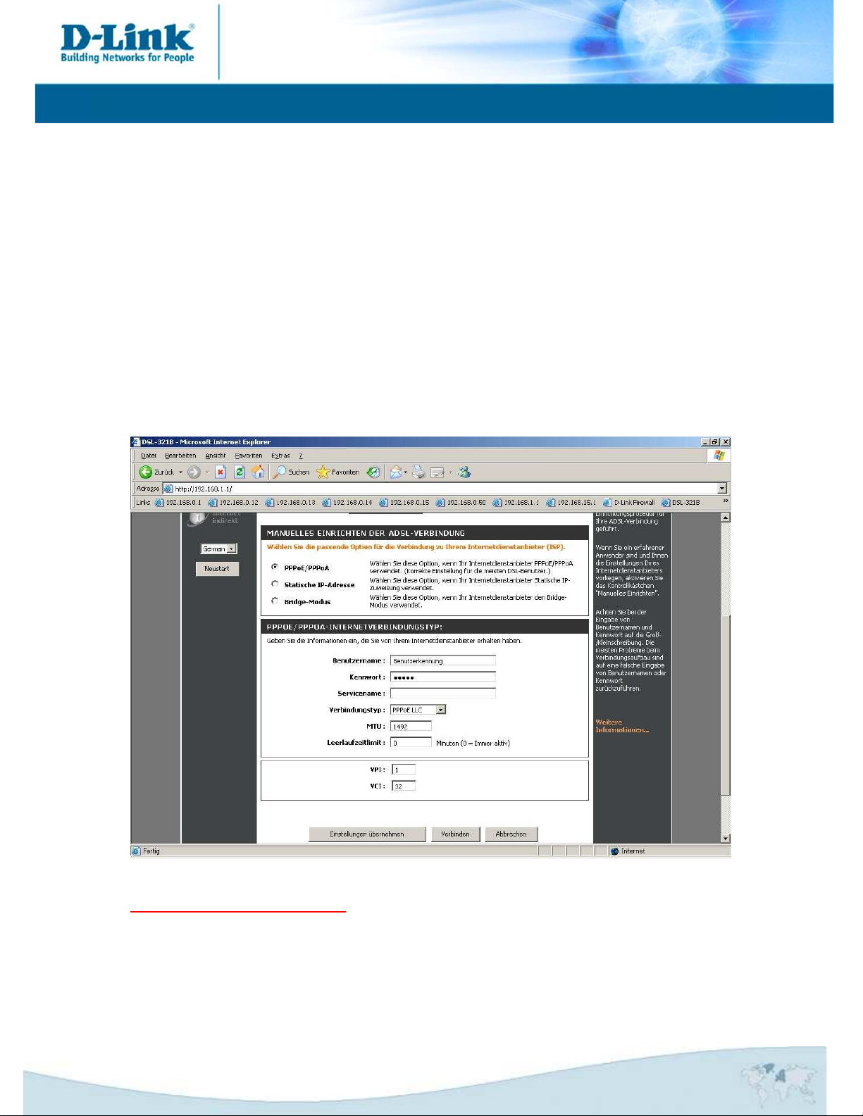 Um über das DSL-320B / DSL-321B mit dem integriertem PPPoE Client einen Zugriff auf