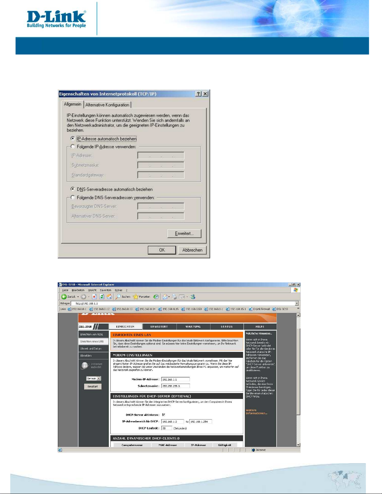 Einstellung des TCP/IP am Rechner und der DHCP Server des Modems