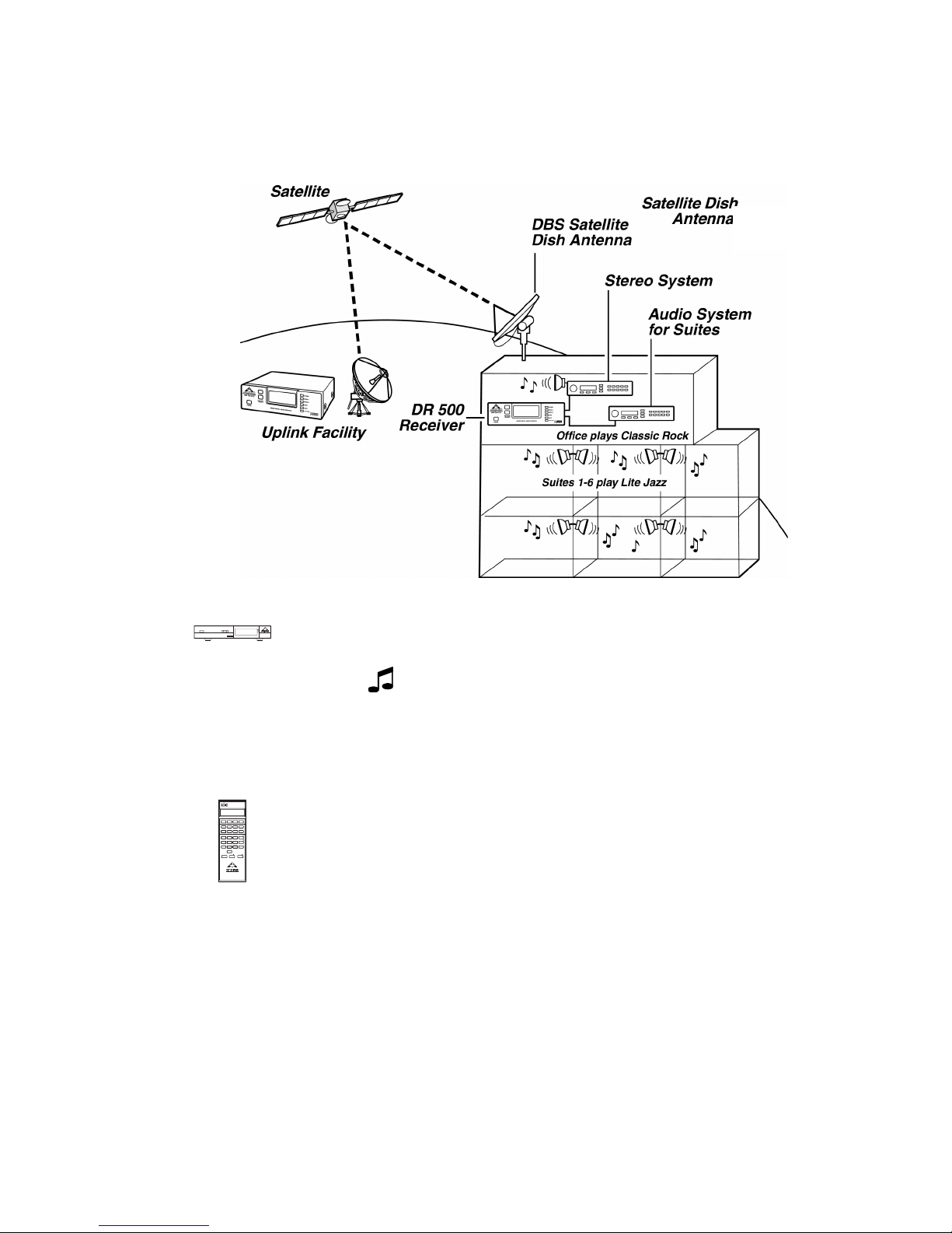 using the DR500 Digital Audio Satellite Receiver and the DMR-22 and DMR-28 DMX/DJ remote control