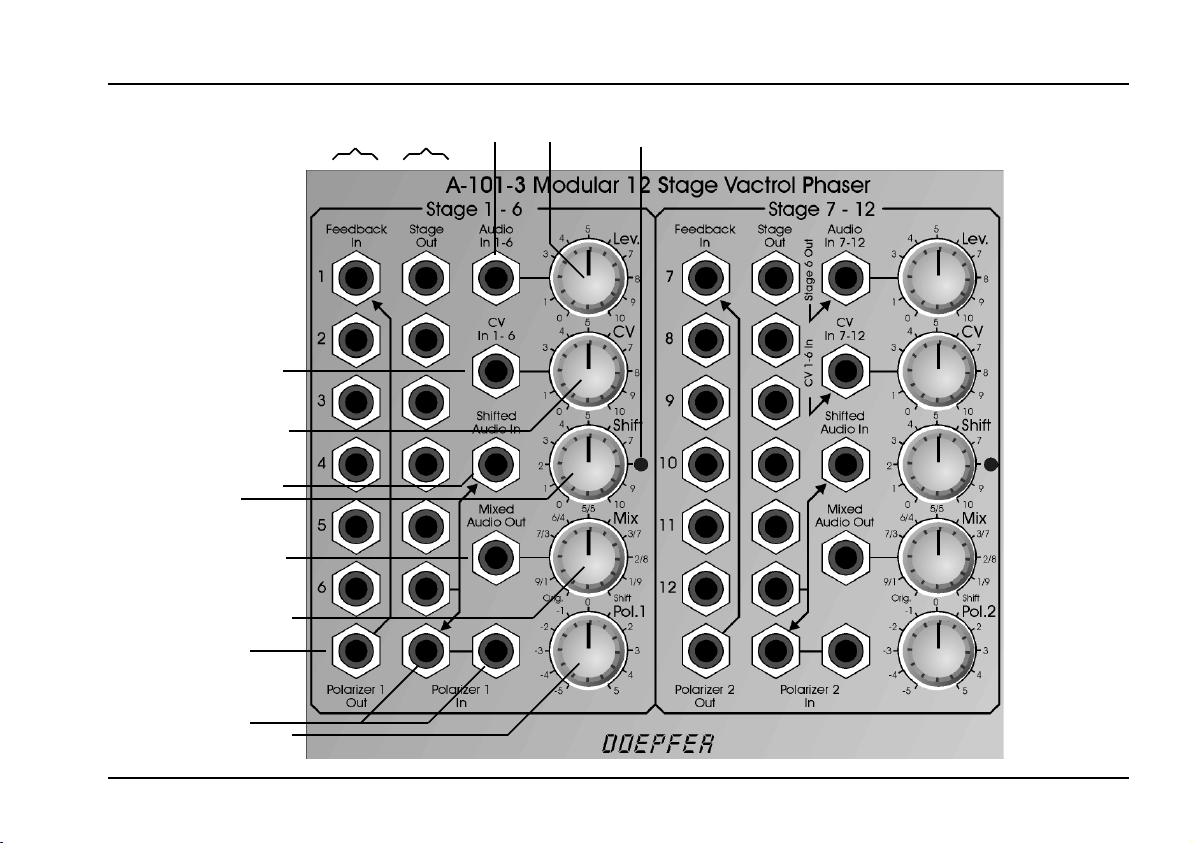 Phasenschieber-Stufen (1-6 bzw. 7-12), die über getrennte Audio-Eingänge (mit Abschwächern) und