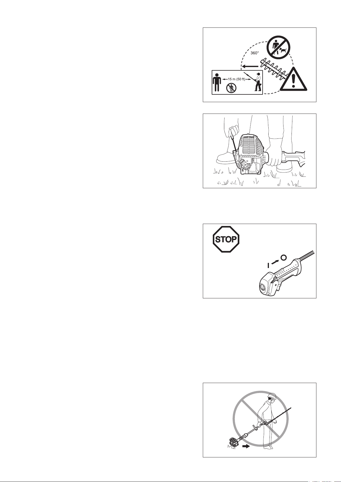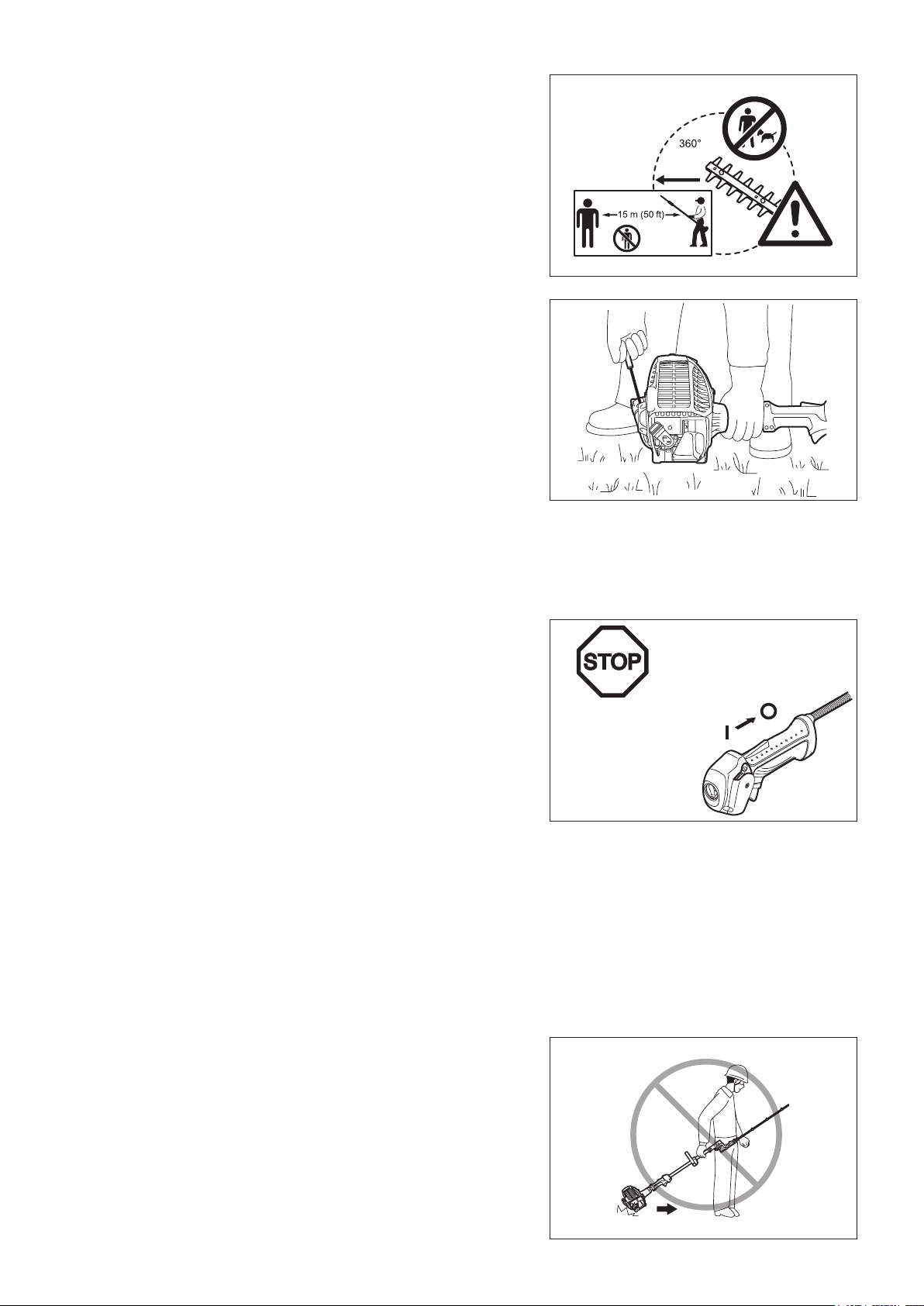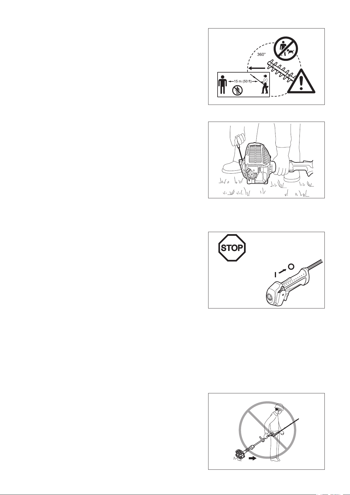 - Serious injury may result if the pole hedge trimmer is used in the following