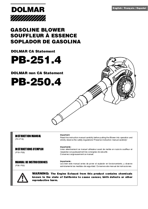 Lea bien este manual antes de poner el soplador en funcionamiento, y observe