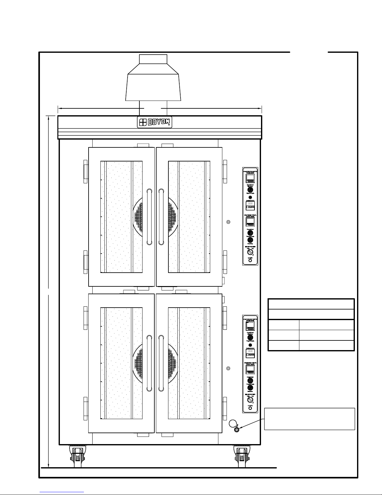 The DOYON gas fired ovens are designed to be used with the gas specified on the descriptive
