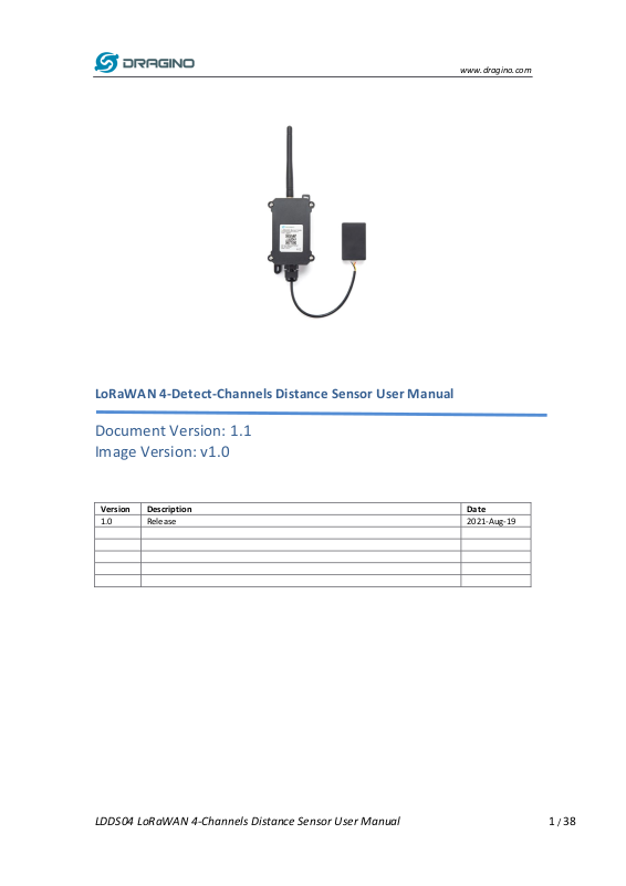LDDS04 LoRaWAN 4-Channels Distance Sensor User Manual 29 / 38
