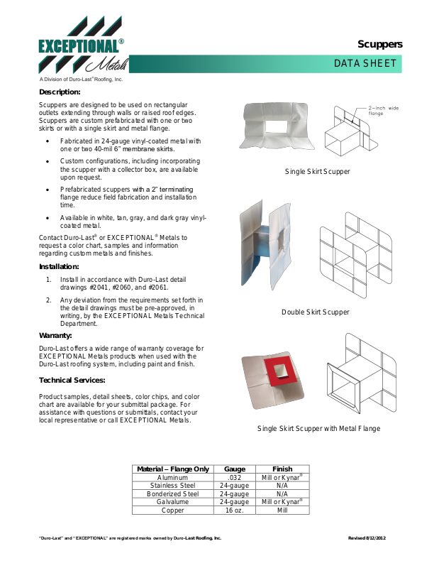 “Duro-Last” and “EXCEPTIONAL” are registered marks owned by Duro-Last Roofing, Inc. Revised 8/12/2012