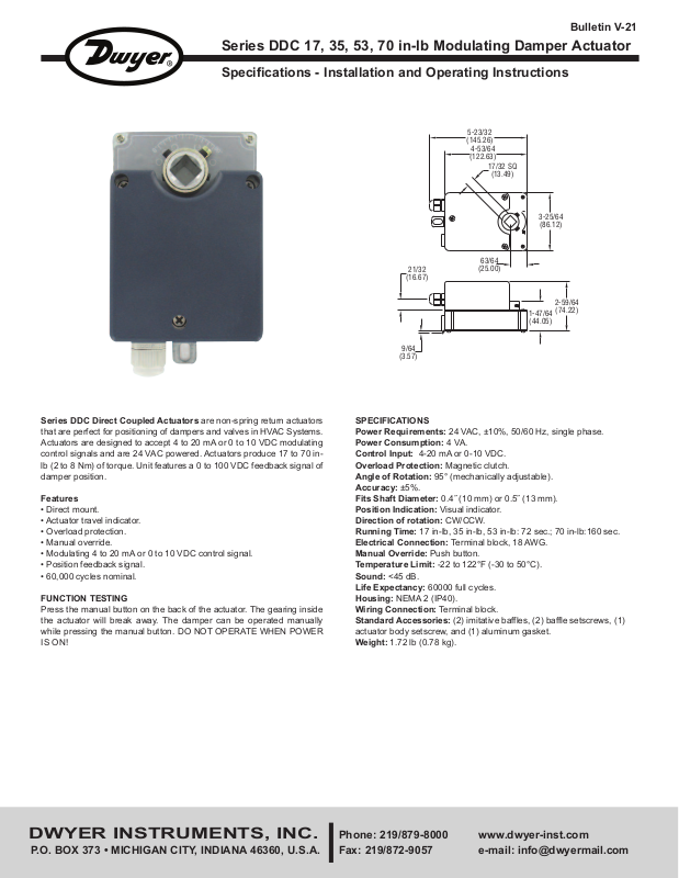 Series DDC 17, 35, 53, 70 in-lb Modulating Damper Actuator