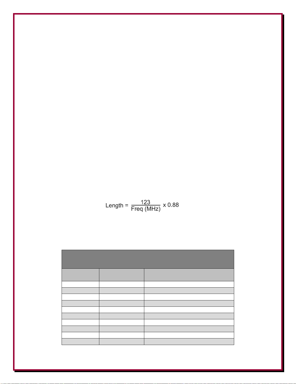 balun and tuner over the frequency range of the antenna. This length can be calculated using the
