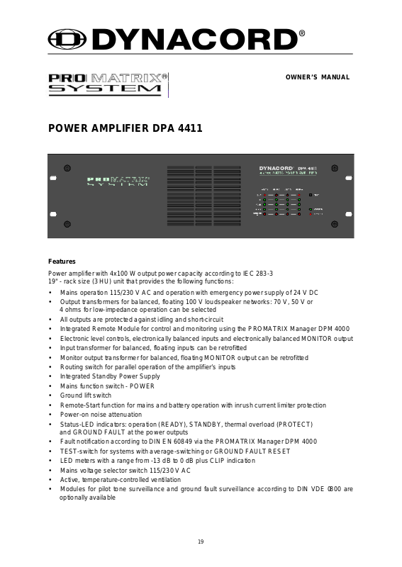 The amplifier DPA 4411 has been specially designed to ensure durable performance and reliable