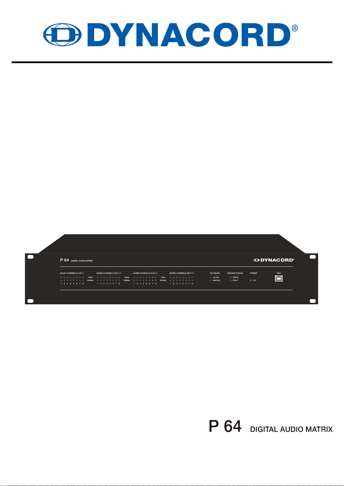 P 64 Digital Audio Matrix from DYNACORD. Before operating the P 64 please read this