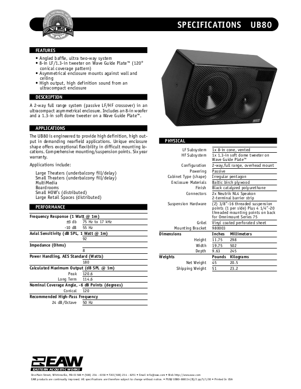 EAW products are continually improved. All specifications are therefore subject to change without notice. • PUB# UB80-888114 (B)/2 pp/5/1/00 • Printed In USA