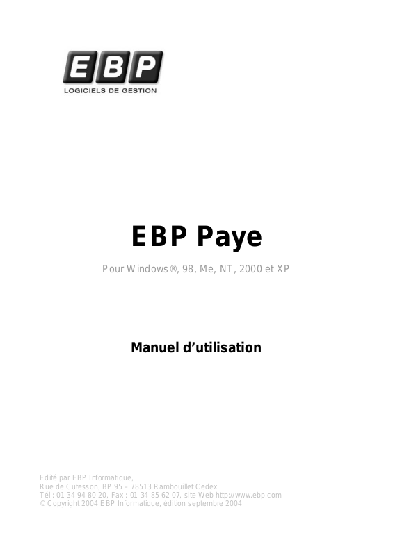 Ce manuel présente le logiciel EBP Paye et donne toutes les inform ations
