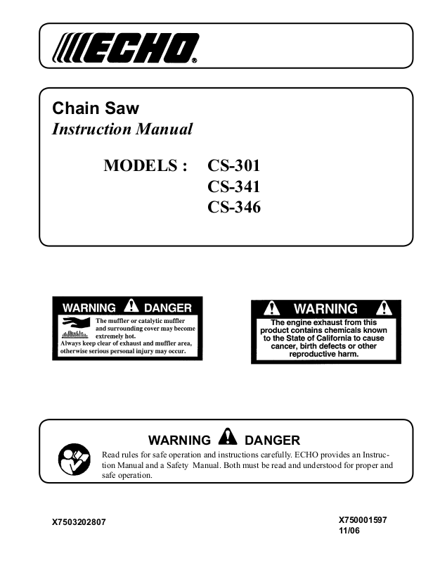 Read rules for safe operation and instructions carefully. ECHO provides an Instruction Manual and a Safety Manual. Both must be read and understood for proper and