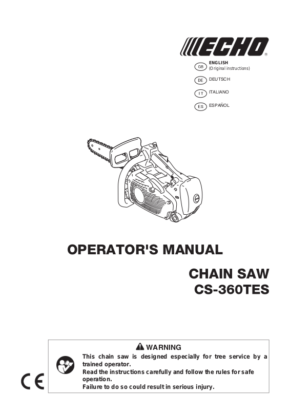 This manual shows rules of safe operation, proper use, servicing, and maintenance of your ECHO chain saw.