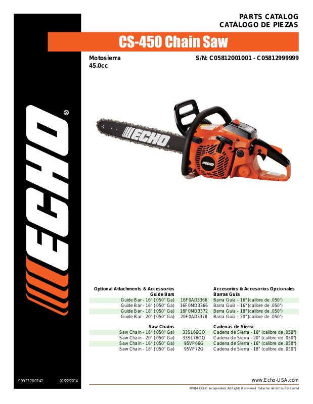 Barra Guía - 20" (calibre de .050")20F0AD3378Guide Bar - 20" (.050" Ga)