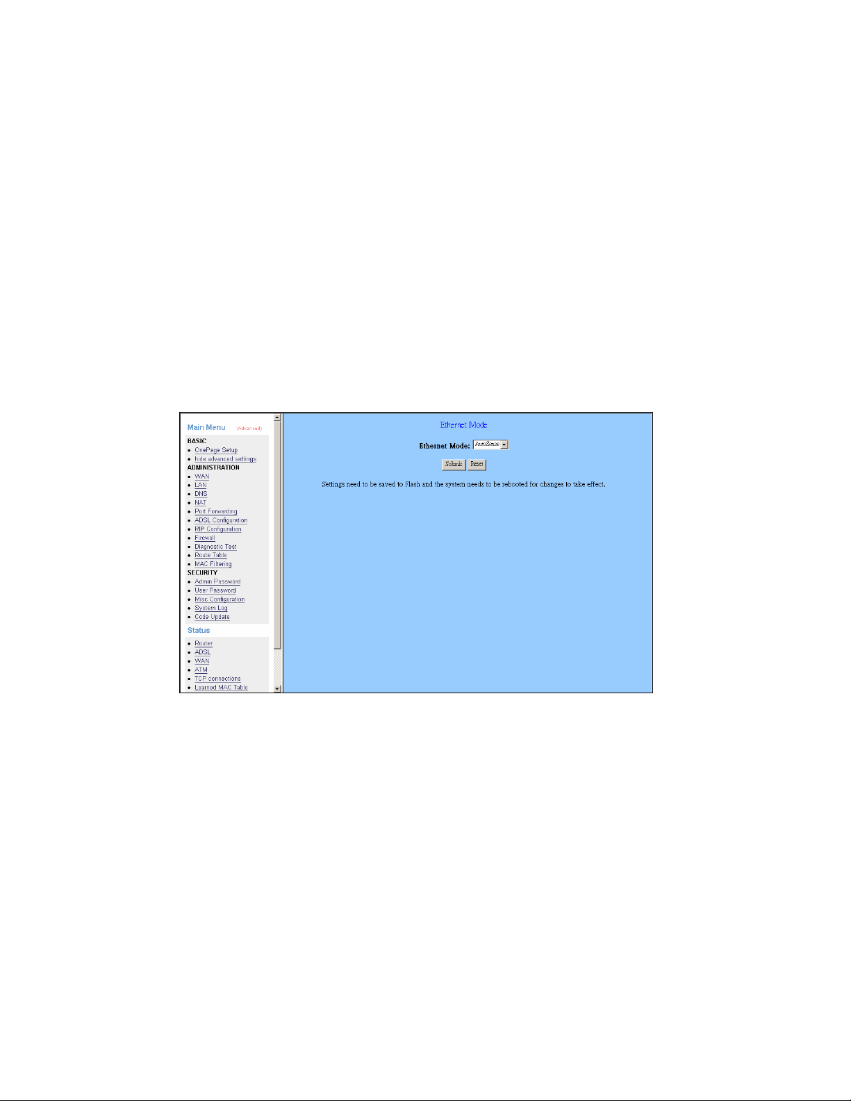 saved into the flash, so it is necessary to go to this Save Settings/Reboot page to save