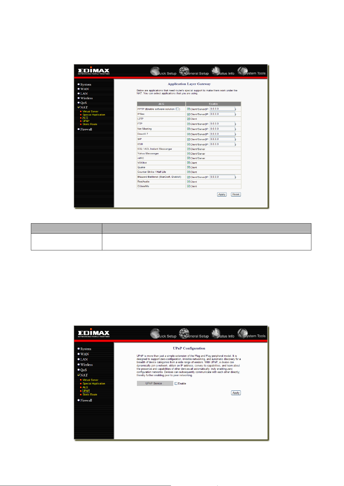 • Support advance features such as: Special Applications, DMZ, Virtual Servers, Access Control,