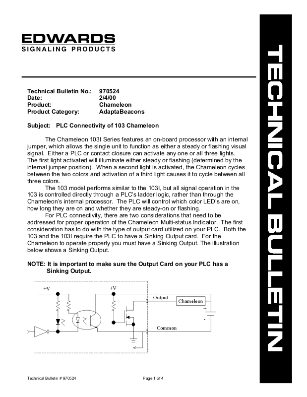 103 and the 103I require the PLC to have a Sinking Output card. For the