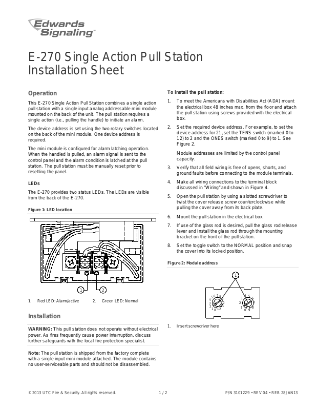 © 2013 UTC Fire & Security. All rights reserved. 1 / 2 P/N 3101229 • REV 04 • REB 28JAN13