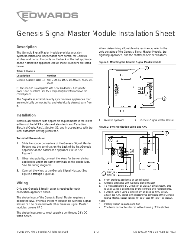 © 2013 UTC Fire & Security. All rights reserved. 1 / 2 P/N 3100124 • REV 08 • REB 30JAN13