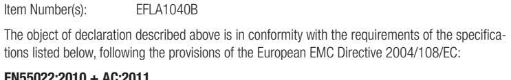 L'objet de la déclaration décrit ci-dessus est en conformité avec les exigences des spécifications énumérées ci-après, suivant les conditions de la directive CEM 2004/108/EC