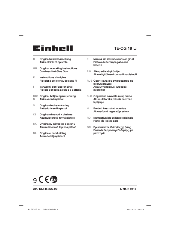 EINHELL PXC TE-CG 18 Li - Solo User Manual