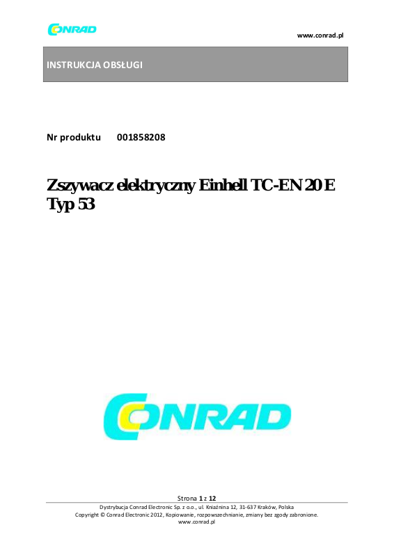 Dystrybucja Conrad Electronic Sp. z o.o., ul. Kniaźnina 12, 31-637 Kraków, Polska