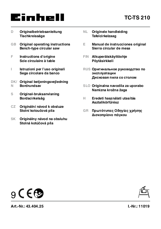 Vorsicht! Verletzungsgefahr! Nicht in das laufende Sägeblatt greifen.