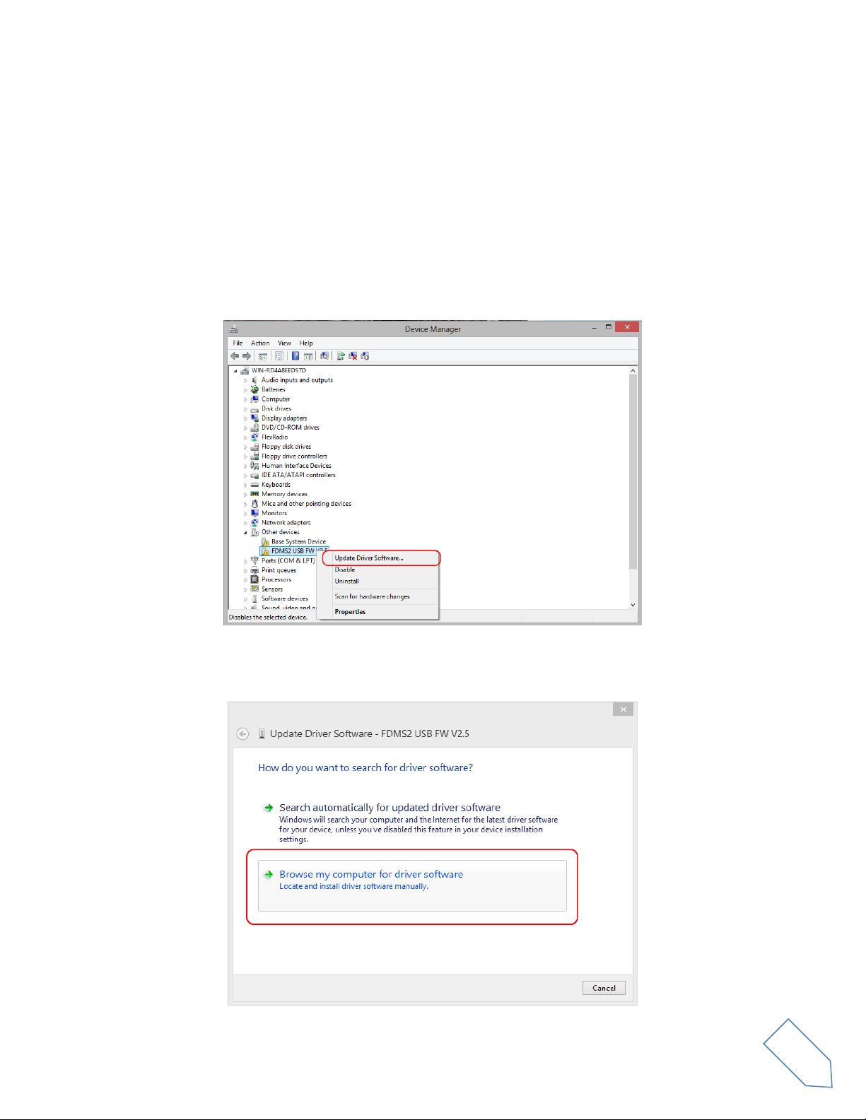 Click on Browse and search for the FDM-S2 driver update folder location, then open