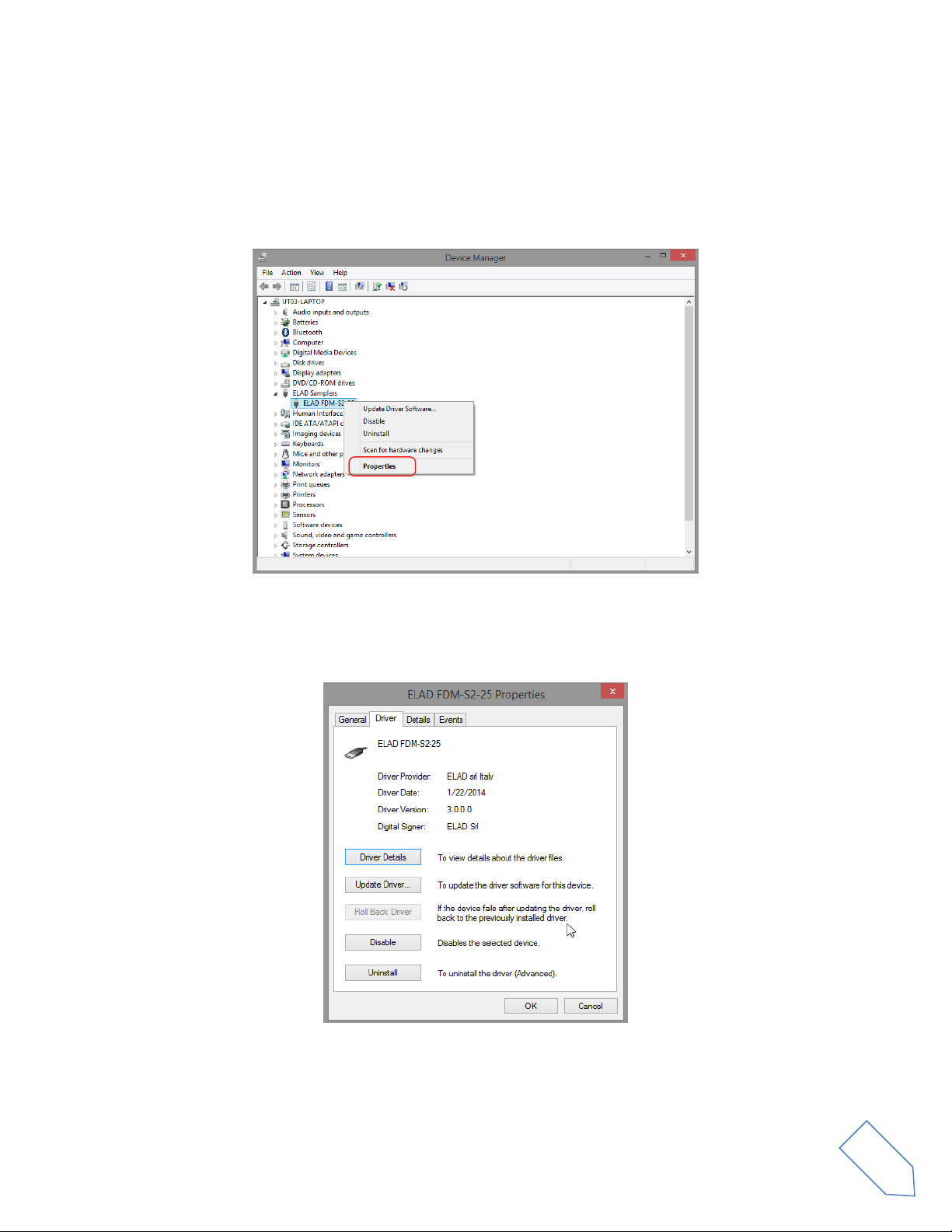 installed and power on the FDM-S2. Open the Device Manager, expand the ELAD Samplers node, right