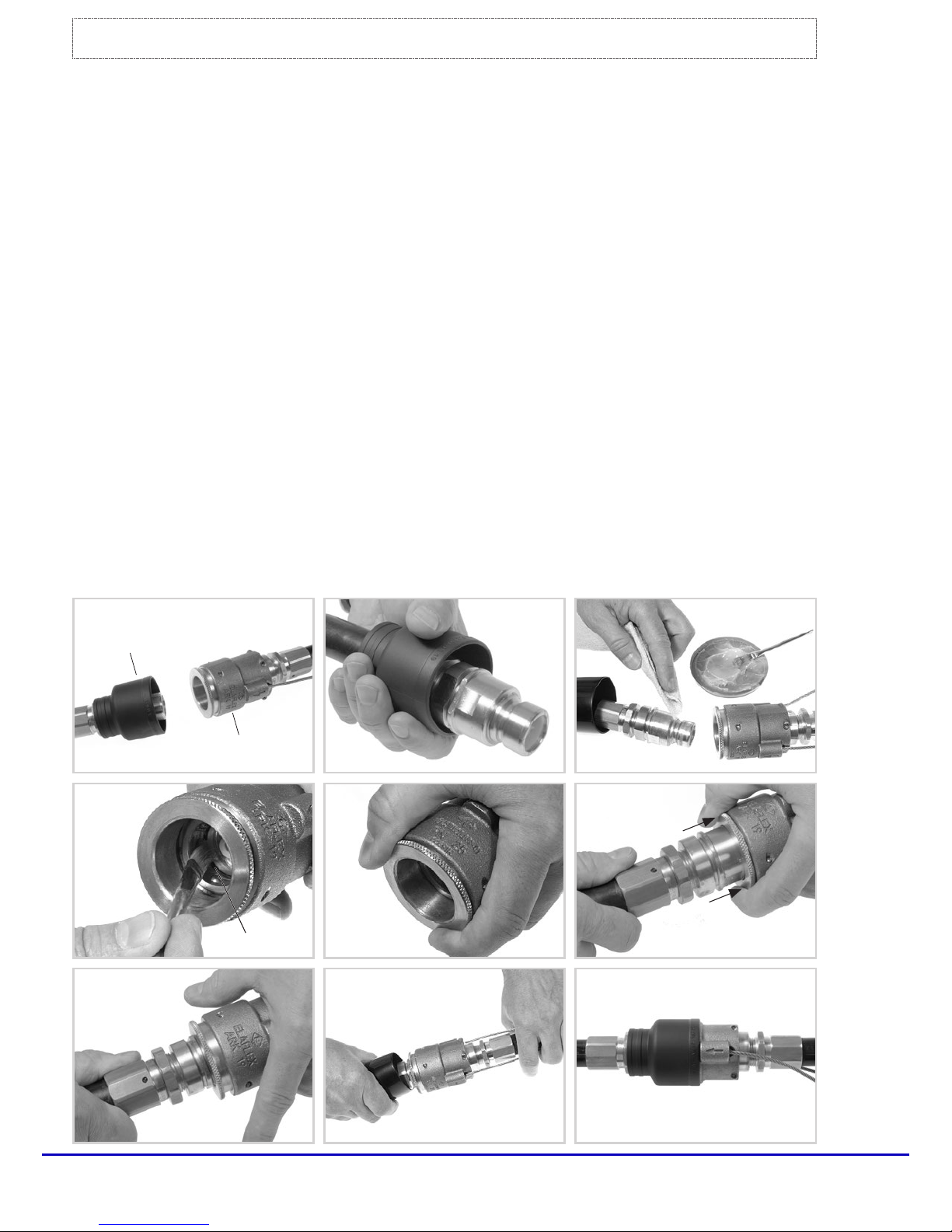 Break Sleeve BS 19 zurückschieben. An schliessend ARK in richtiger Einbauricht ung zwischen die Schläuche montieren. Zur Erleichterung der Montage