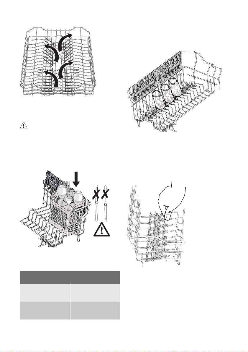 • Messen en andere voorwerpen met scherpe punten moeten met de punt naar be-