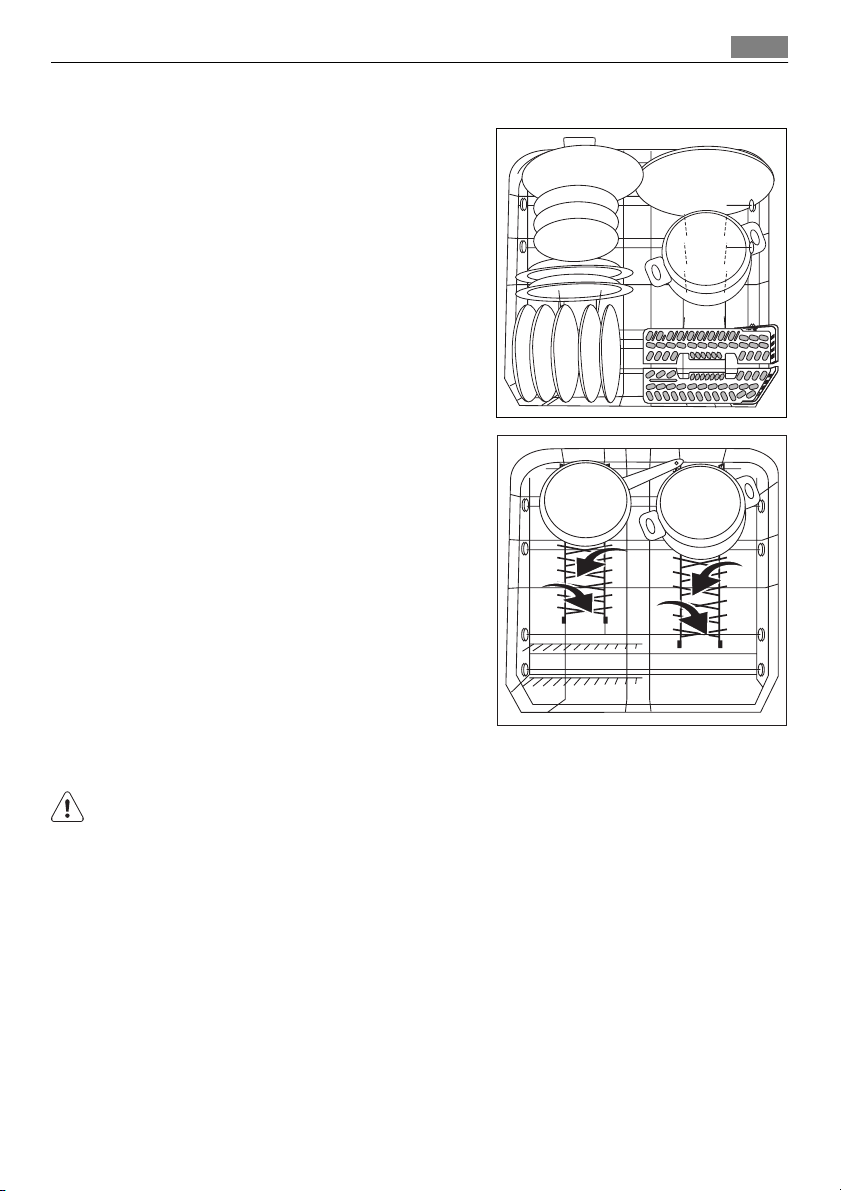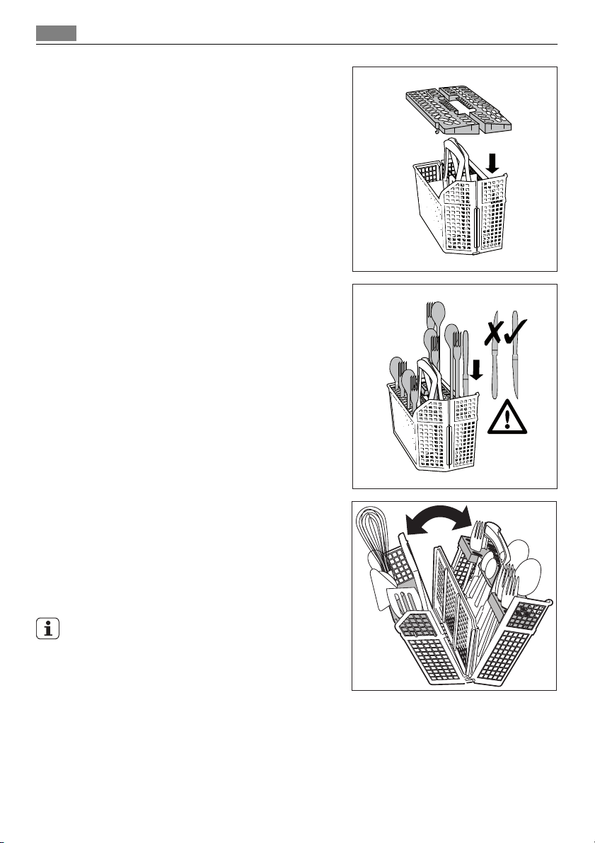 • Plaats de messen en alle voorwerpen met scherpe punten met de punt naar beneden in