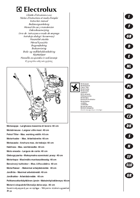 Benzínový kultivátor Max. íøka zábìru: 40 cm