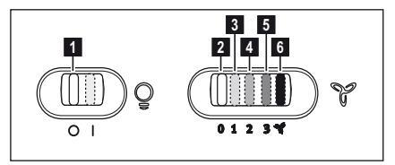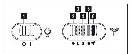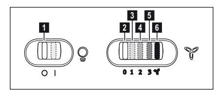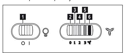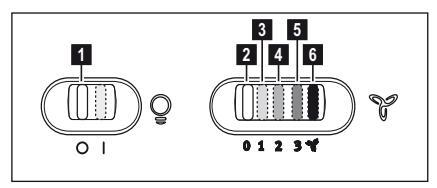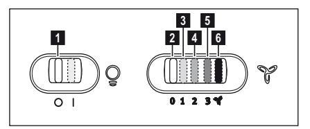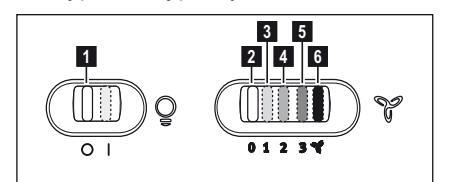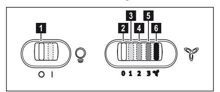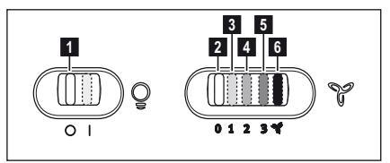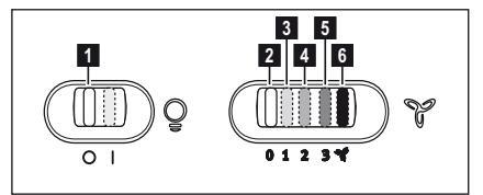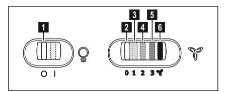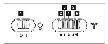 Ο απορροφητήρας είναι εξοπλισμένος με πίνακα ελέγχου που έχει τη δυνατότητα ελέγχου επιλογής ταχυτήτων και με διακόπτη φωτισμού για να ελέγχει το φωτισμό στη μαγειρική ζώνη
