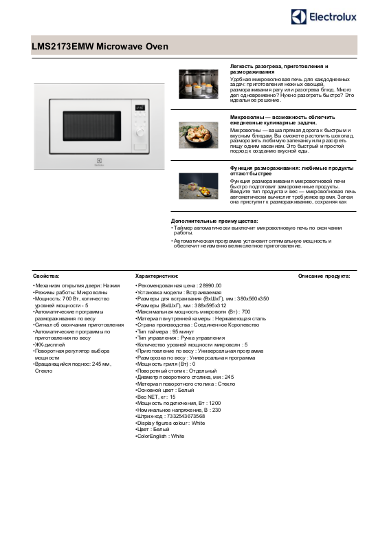 Введите тип продукта и вес — микроволновая печь