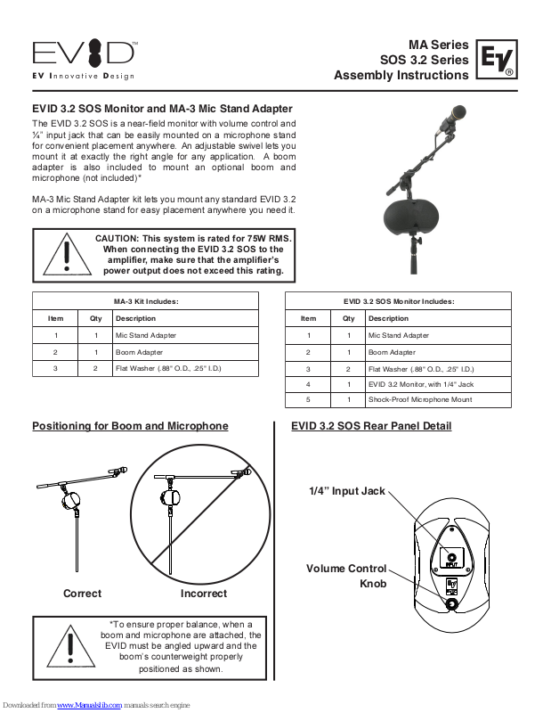MA-3 Mic Stand Adapter kit lets you mount any standard EVID 3.2