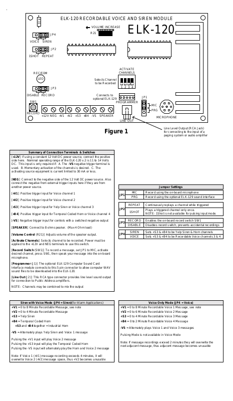 [Record Switch (SW1)] To record a message, set JP1 to MIC, activate