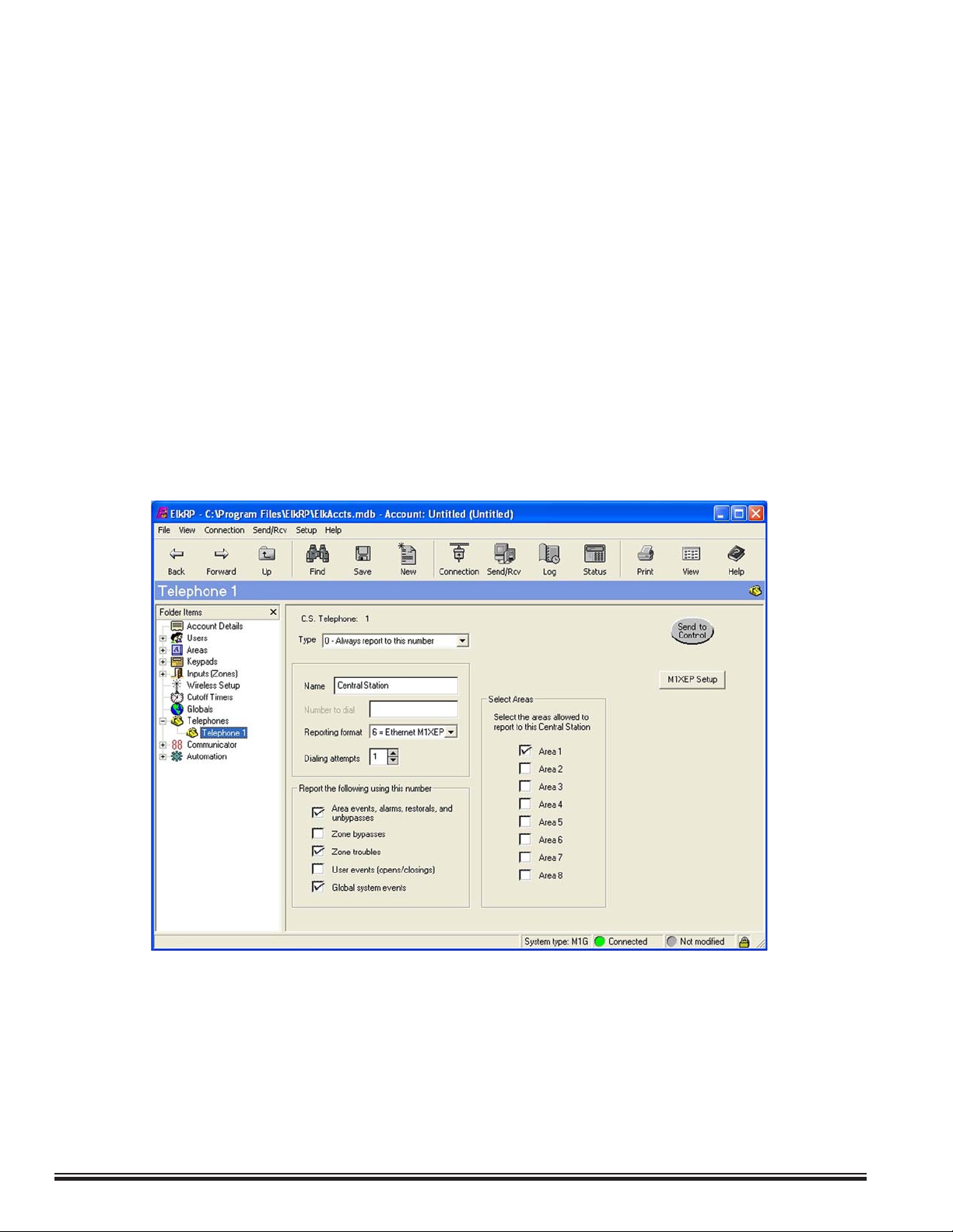 Account Number - A 4 digit number entered on the Telephone ID screen and the Central Station screen of the M1XEP setup. This