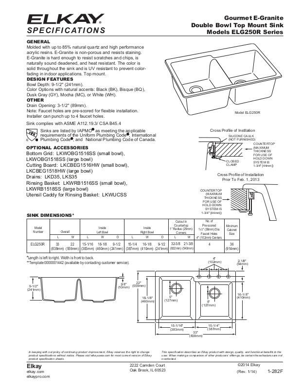 In keeping with out policy of continuing product improvement, Elkay reserves the right to change