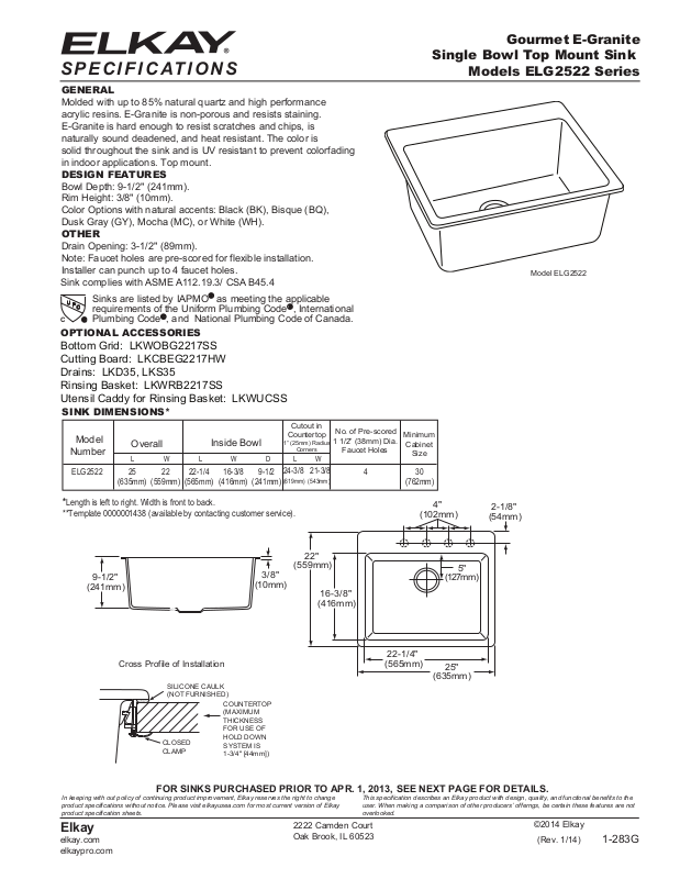 FOR SINKS PURCHASED PRIOR TO APR. 1, 2013, SEE NEXT PAGE FOR DETAILS.