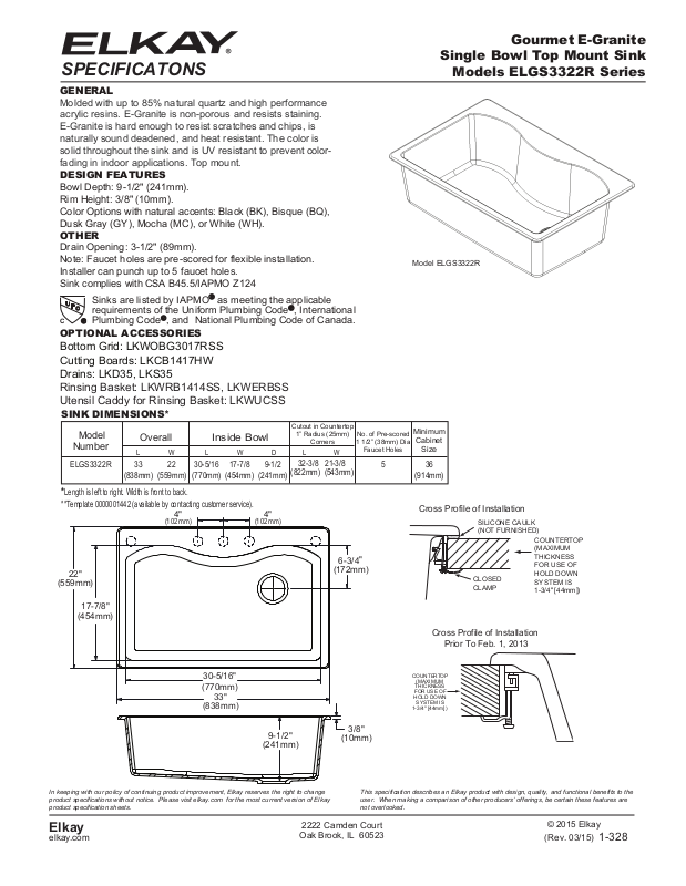 product specifications without notice. Please visit elkay.com for the most current version of Elkay