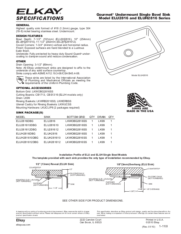 This specification d escribes an Elkay produc t with design, q uality and functional benefits to the