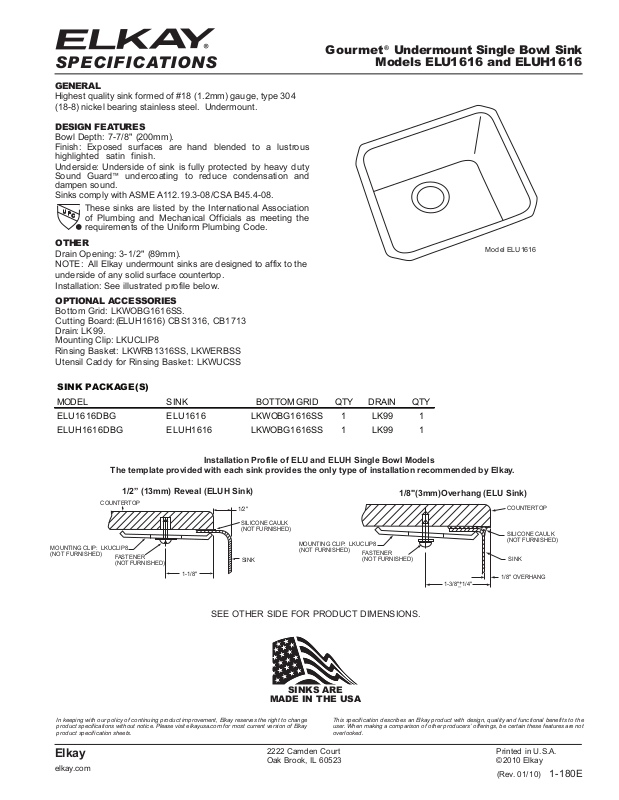 product sp ecifications without not ice. Please visit elkayusa.c om for most current version of Elkay