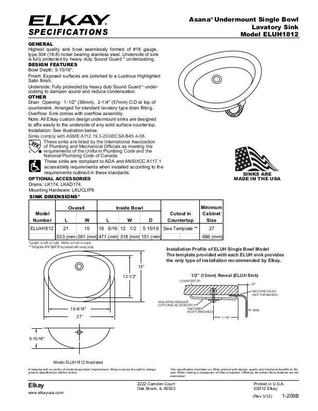 The template provided with each ELUH sink provides