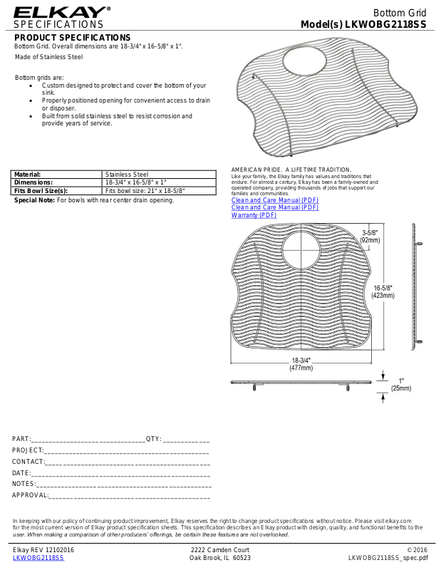 LKWOBG2118SS Oak Brook, IL 60523 LKWOBG2118SS_spec.pdf