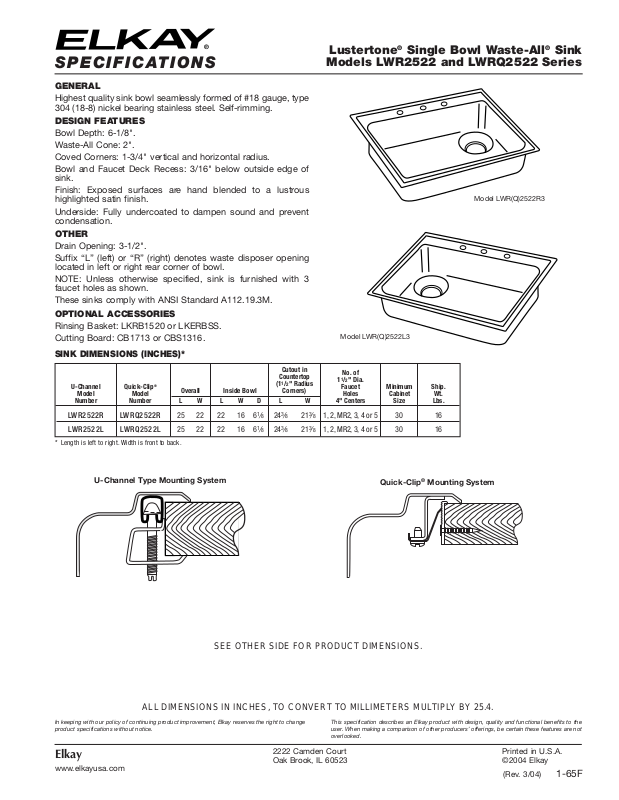 In keeping with our policy of continuing product improvement, Elkay reserves the right to change