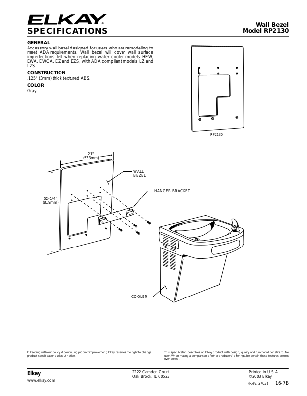 In keeping with our policy of continuing product improvement, Elkay reserves the right to change